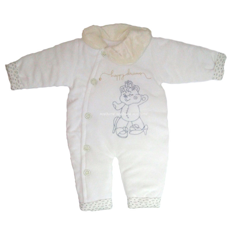 "МоёДитё" комбинезон велюр на синтепоне молочный М585 "Каталея"